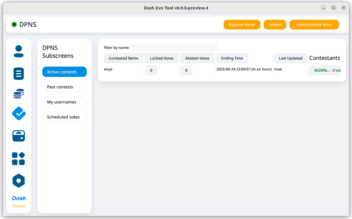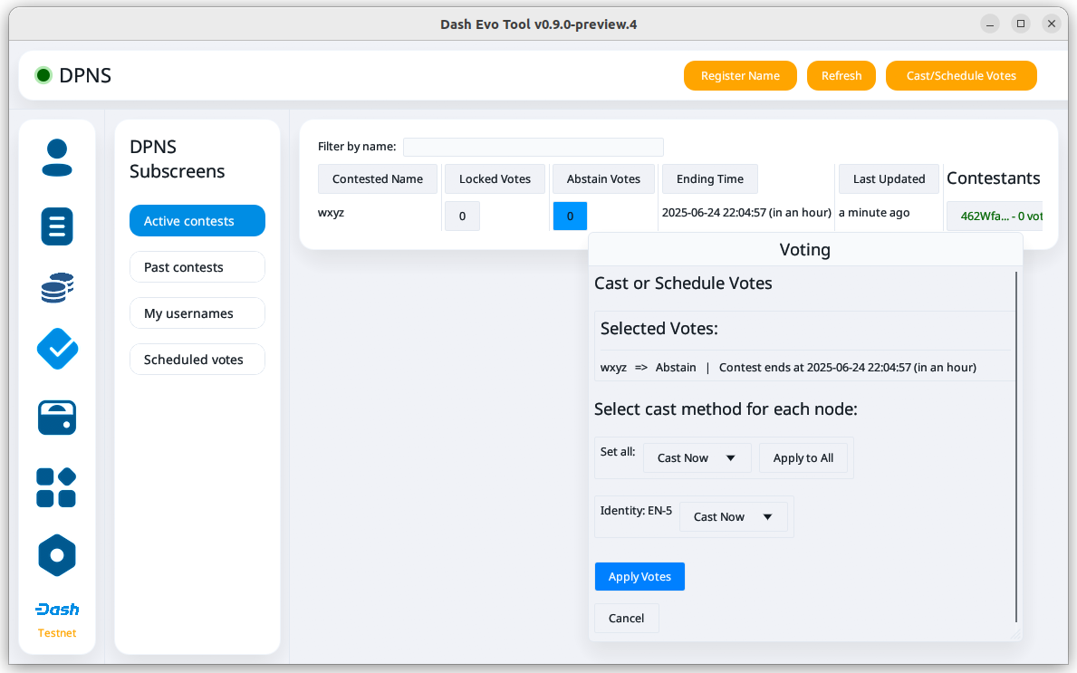 Dash Evo Tool is an application designed to help you vote on usernames, withdraw evonode credits, manage tokens, and complete an expanding list of Platform actions. This guide describes how to download, install, and use the Dash Evo Tool.