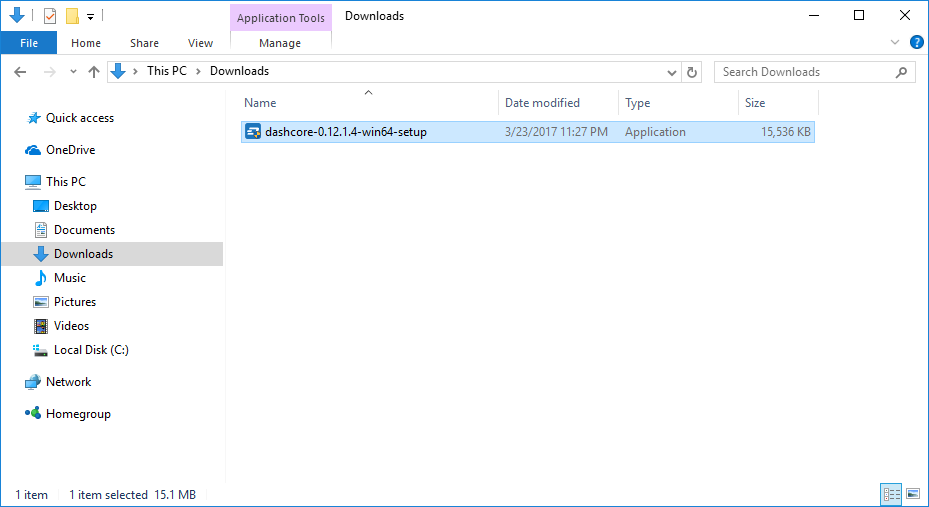 Double-click the file to start installing Dash Core.